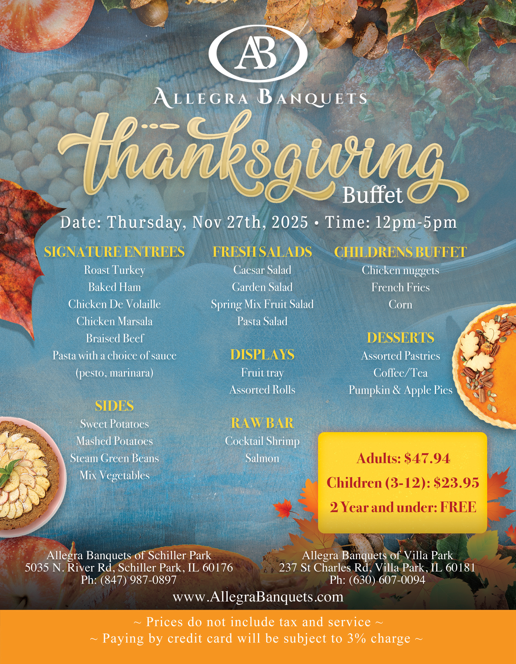 Step into elegance at Allegra Banquets in Villa Park, IL, where personalized service begins with a complimentary consultation and a private tour of our stunning, versatile banquet spaces.
